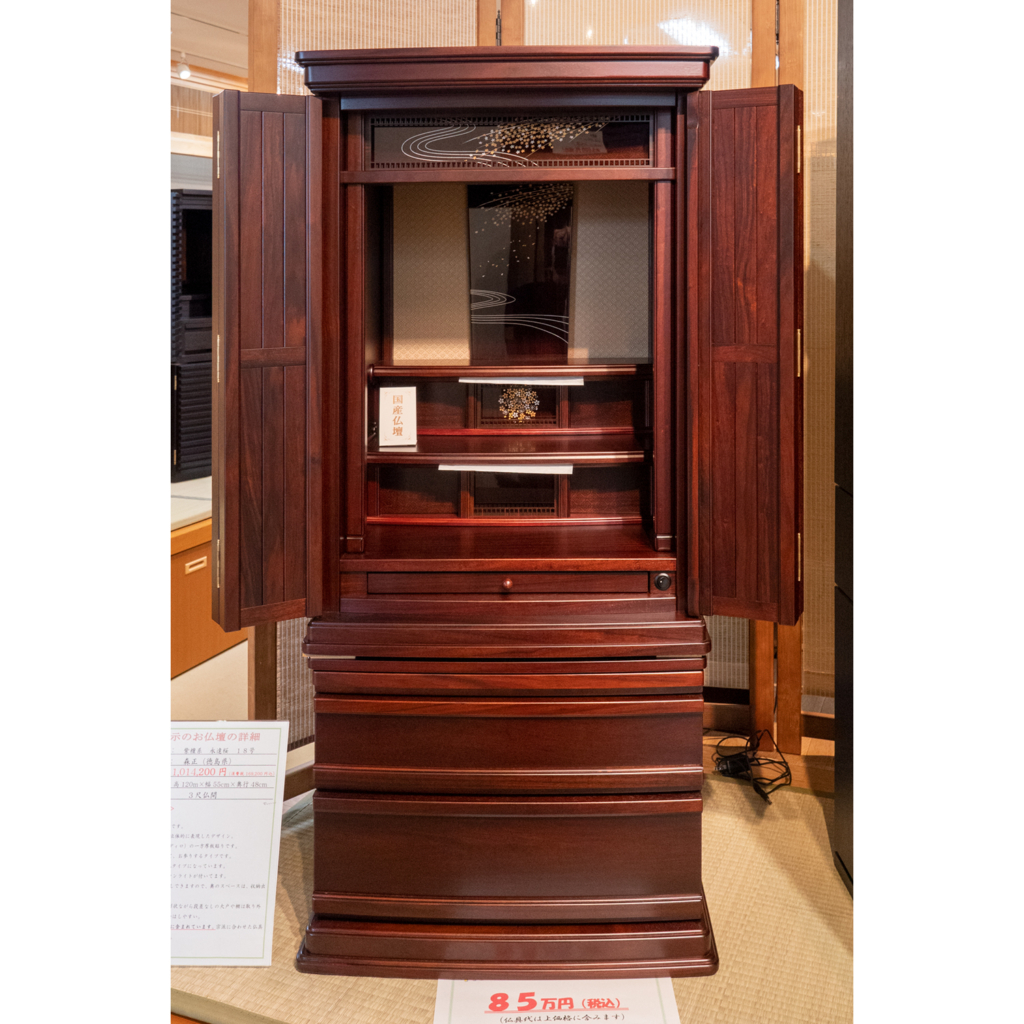 商品名紫檀系 永遠桜 18号メーカー森正(徳島県)価格308,000円(税込み)本体寸法高76cm×幅49cm×奥行43cm仏間寸法?尺仏間ポイント仏具代は、上記価格に含みません。 -
