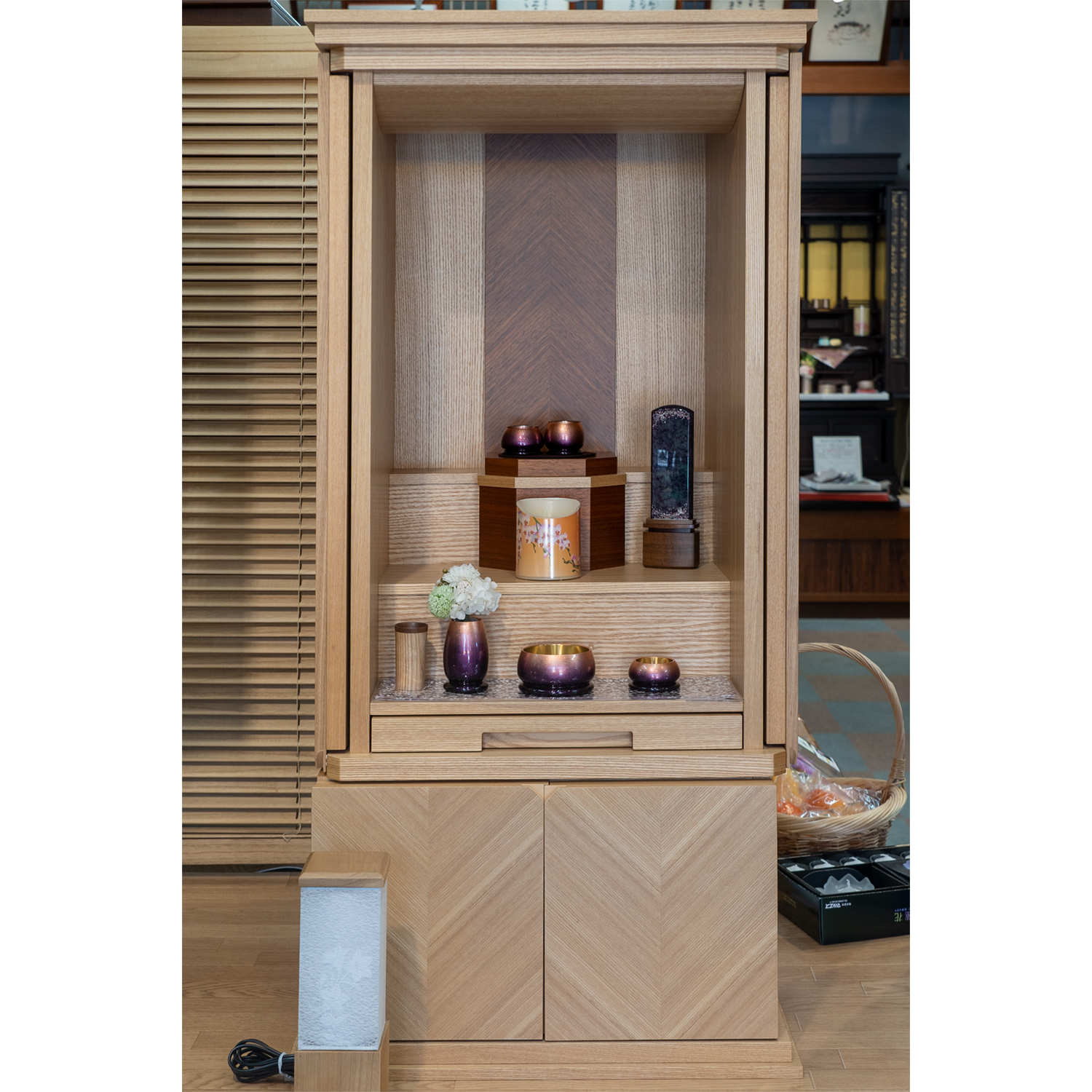 - 仏具代は、上記価格に含まれていません。現代調のお仏壇に合わせて様々な仏具がございます。お好みの仏具をお選びください。(仏具代は別料金になります。)