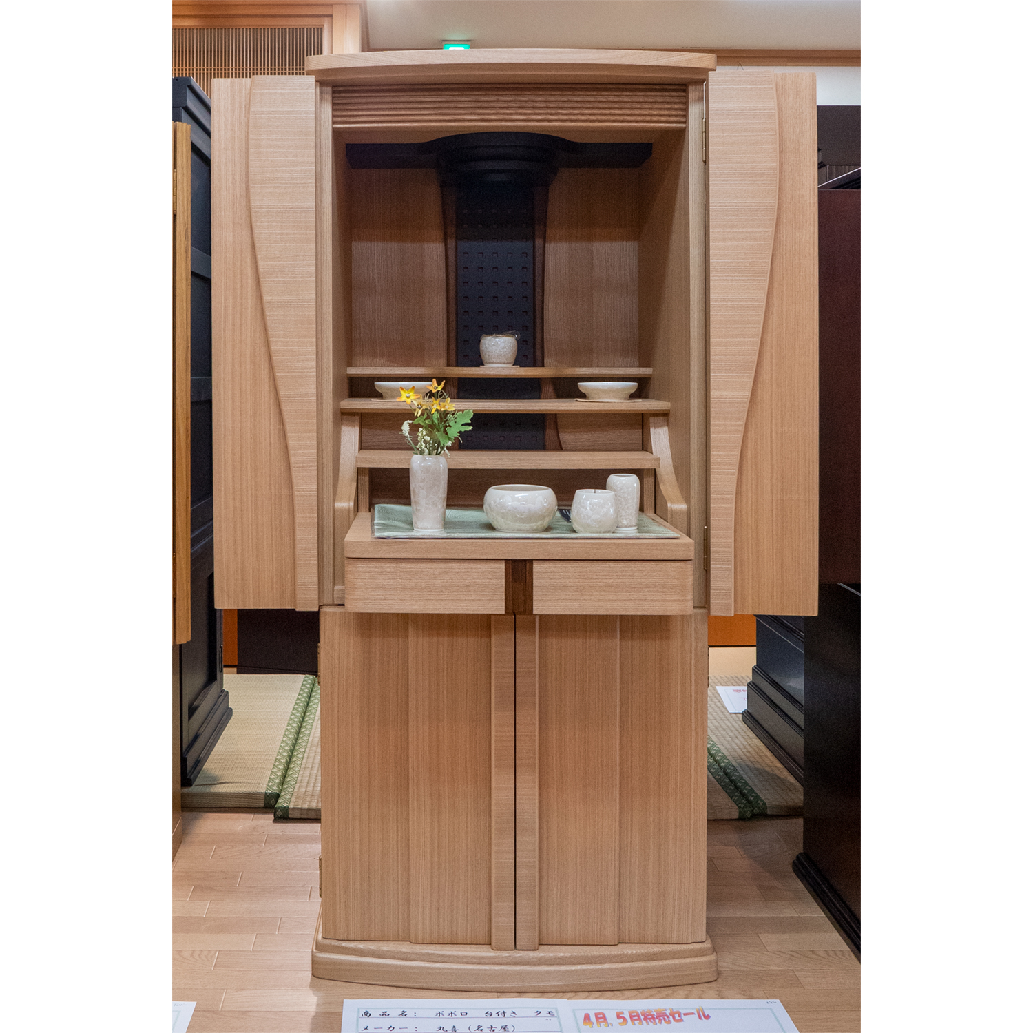 現代調仏壇(ポポロ 台付き タモ) 2021 6/18 富山店 商品名ポポロ 台付き タモメーカー丸喜(名古屋)価格695,200円(税込み)本体寸法高126cm×幅54cm×奥行45cm仏間寸法?尺仏間 ポイント 仏具代は、上記価格に含みません。 現代調仏壇(ウラノス ウォールナット 1200) 現代調仏壇(伝心 ウォルナット)