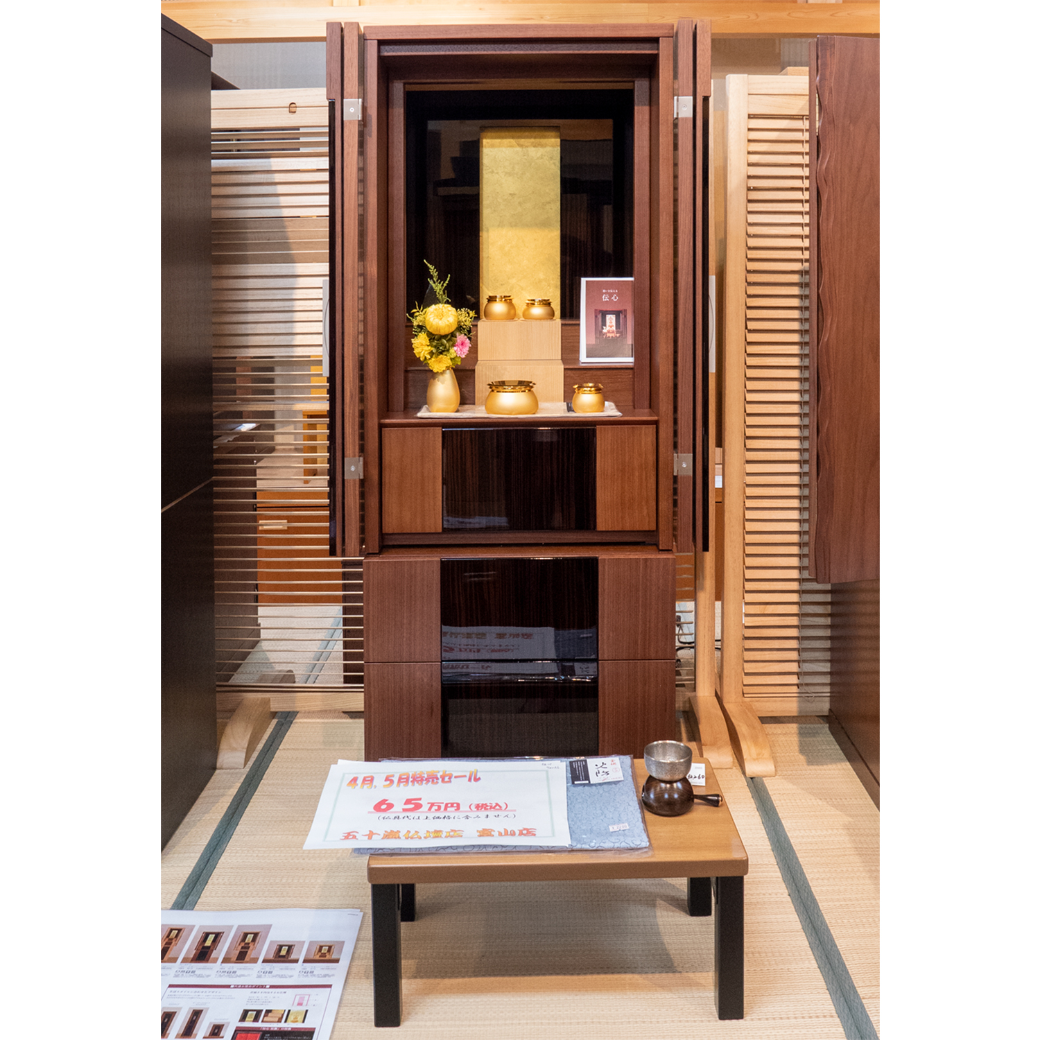 現代調仏壇(伝心 ウォルナット) 2021 6/18 富山店 商品名伝心 ウォルナットメーカー保志(会津)価格?円(税込み)本体寸法高?cm×幅?cm×奥行?cm仏間寸法?尺仏間 ポイント 仏具代は、上記価格に含みません。 現代調仏壇(ポポロ 台付き タモ) 現代調仏壇(ミュール ウォルナット&タモ40号)