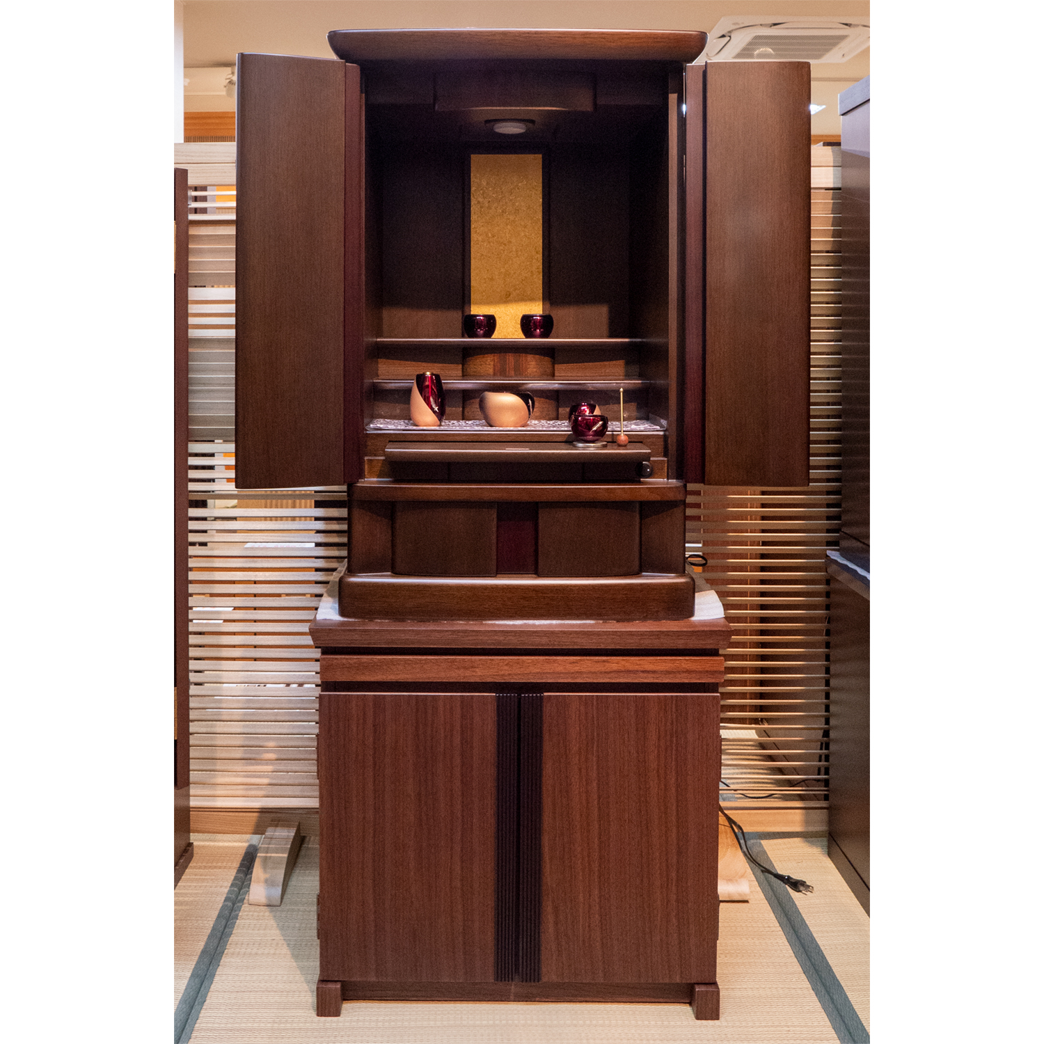 唐木仏壇(善 25号) 2021 6/14 富山店 商品名紫檀系 永遠桜 18号メーカー森正(徳島県)価格308,000円(税込み)本体寸法高76cm×幅49cm×奥行43cm仏間寸法?尺仏間 ポイント 仏具代は、上記価格に含みません。 現代調仏壇(伝心箔艶 1350) 現代調仏壇(ウラノス ウォールナット 1200)